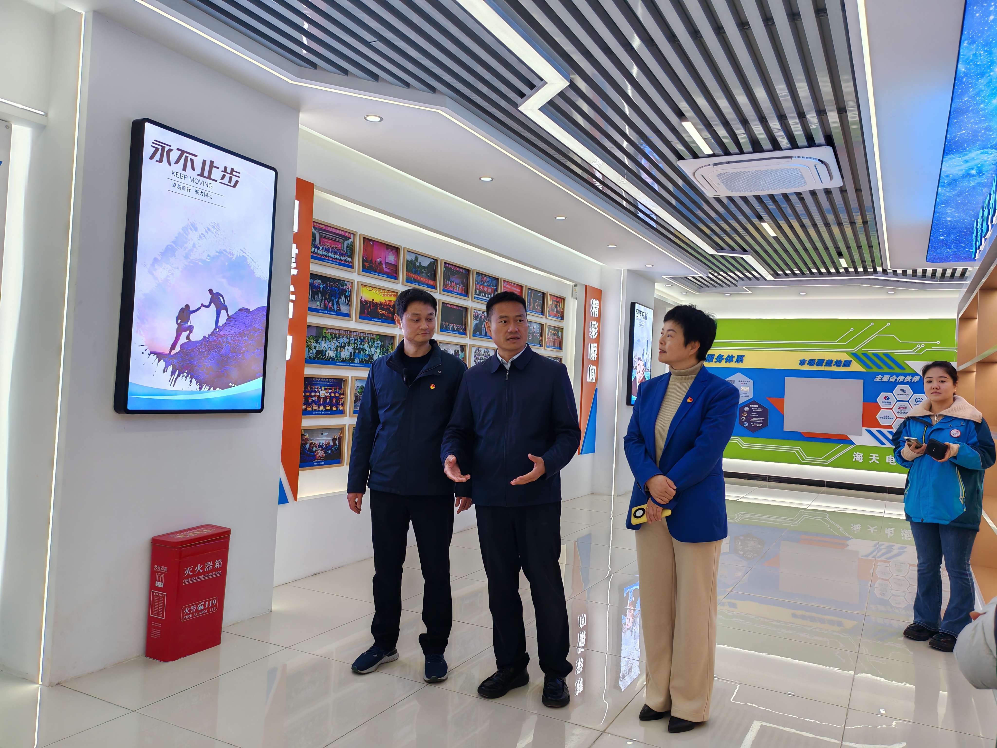 随后,调研组参观了企业党建展厅与文化展厅,全面了解了海天电缆的发展历程、企业文化、荣誉资质、产品体系以及党建成果等,并提出了宝贵意见。