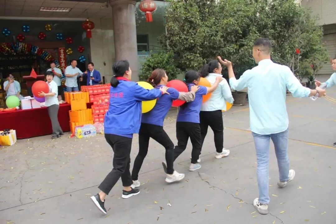 比赛进行中, 员工自发在旁边围观助威,变成了最给力的啦啦队员,为比赛场上的选手们欢呼雀跃、摇旗呐喊。赛场上呐喊声、欢呼声、尖叫声,朗朗的笑声此起彼伏,广场变成一片欢乐的海洋。