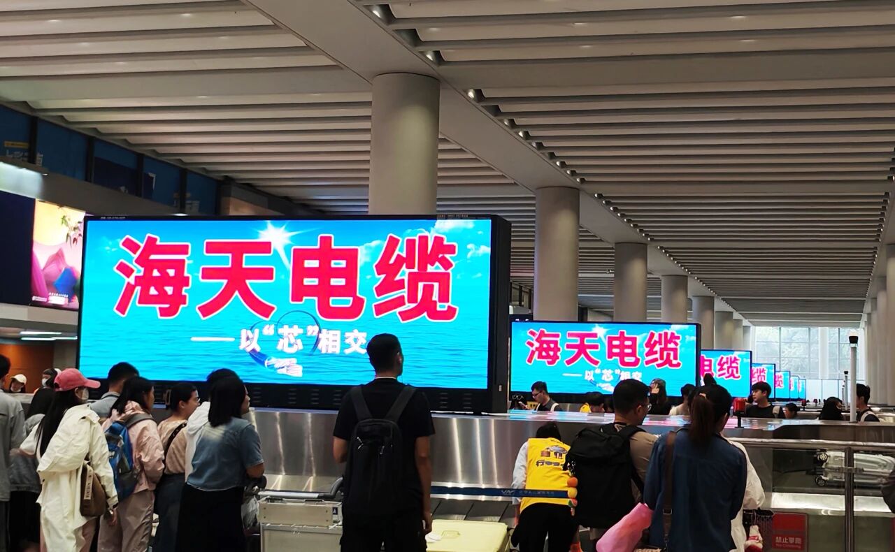 国庆中秋双节叠加的出行高峰,海天电缆顺势推进机场广告战略升级,在保留原有优质广告点位的基础上,新增三大广告位,构建从“出发层”到“抵达层”的全场景品牌渗透网络。