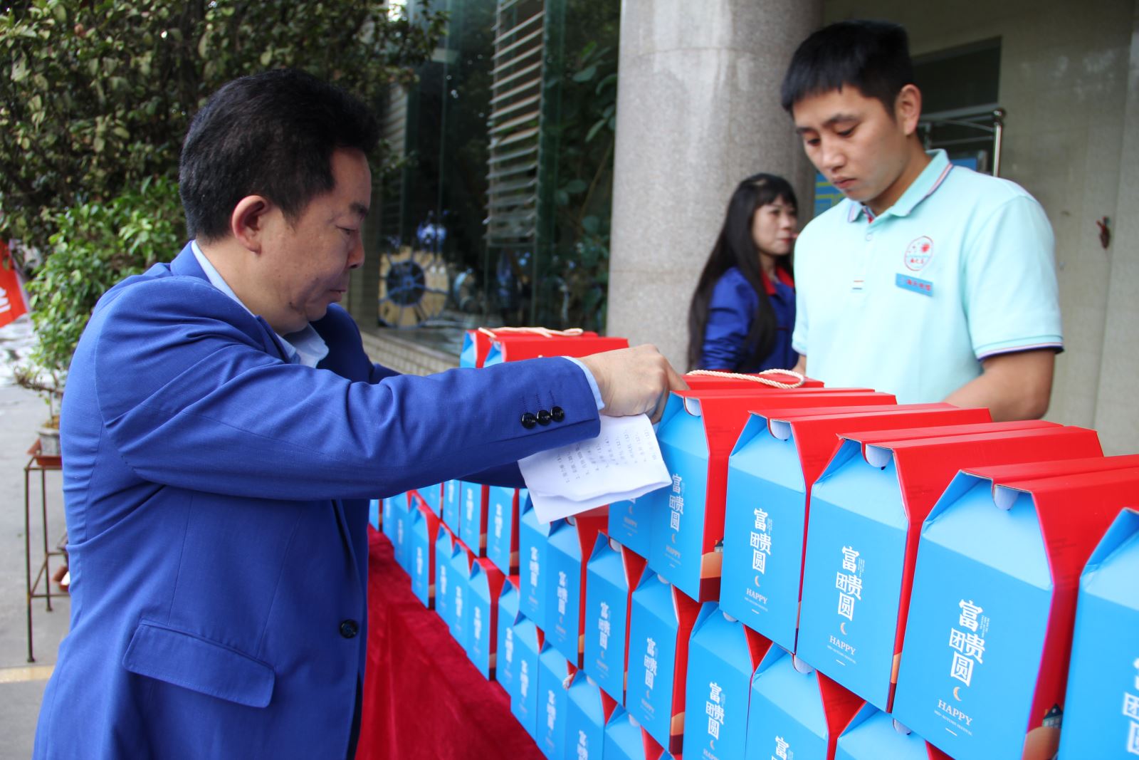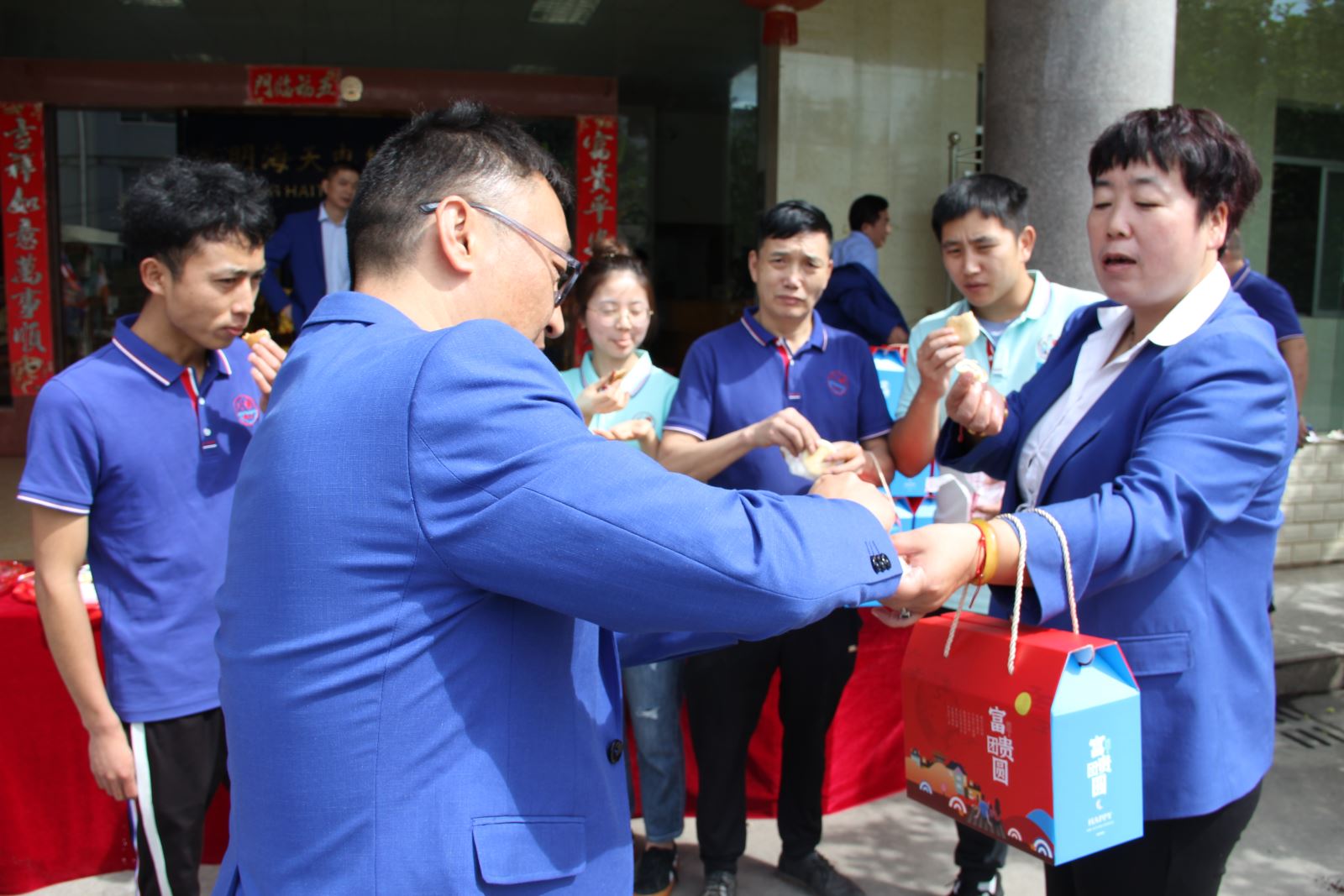 公司领导为员工准备节日礼品