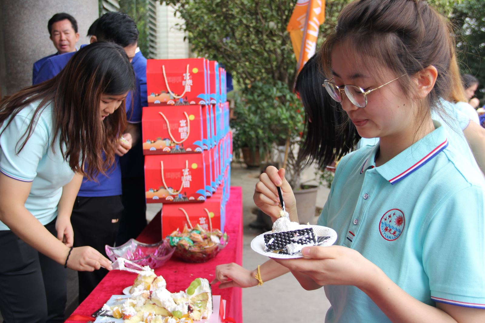 员工品尝蛋糕