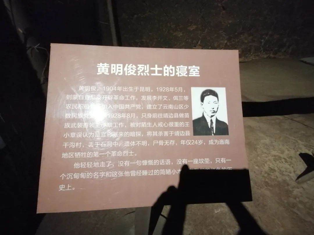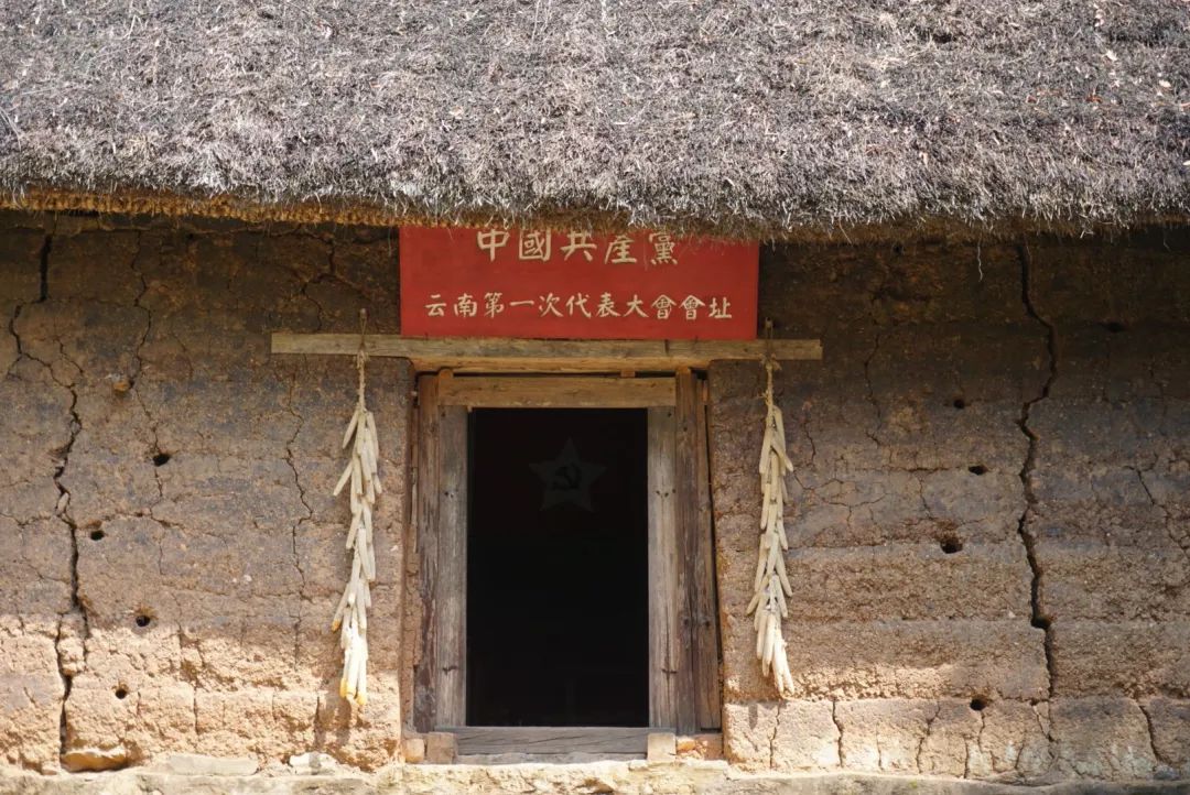 这座简陋的只有两扇小窗的红土房,屋顶布满杂草与苔藓,土坯堆砌而成的墙壁已经随着岁月的流逝出现条条裂纹,屋内有火塘、桌子、条凳,茅草屋正中央最醒目的地方悬挂着一面党旗,这一切的一切都鲜活地记录着那段深刻的历史。那盏仿佛还在发光的小马灯,那茅草房里几张破旧的木桌,那桌上的油灯告诉我们,当年“一大”的代表们就是围着这几张破旧的木桌开会的。然而,就是这几张破木桌,凝结了云南人民与反动派斗争到底的决心;就是那桌上原始的油灯,点燃了云南革命的火种,星星之火从此形成了燎原之势,令反动派见之畏惧,闻之丧胆。