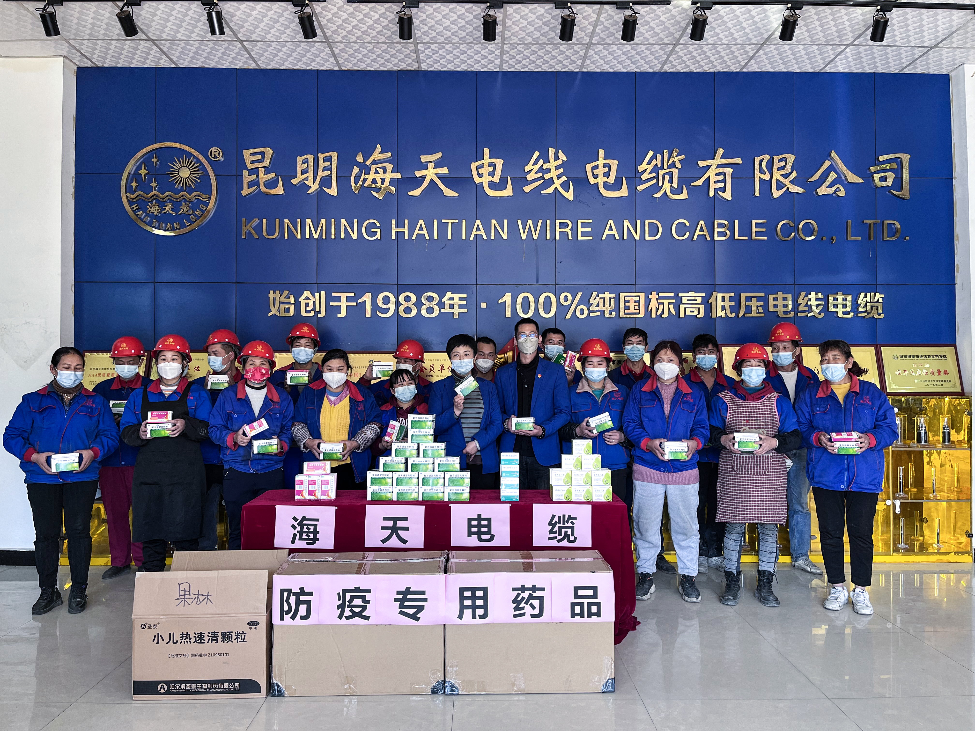 为此,海天电缆始终将员工的健康安全放在第一位,及时了解员工身体和隔离情况,为确保员工及时预防和治疗,公司连续几天分派人手去各大药店购买防疫必备的“布洛芬缓释胶囊”“三九感冒灵颗粒”等常用药品,于2022年12月12日分发到每一个员工手中,在员工和疫情之间竖起一面暖心的防护屏障,海天就是我们避风的港湾!