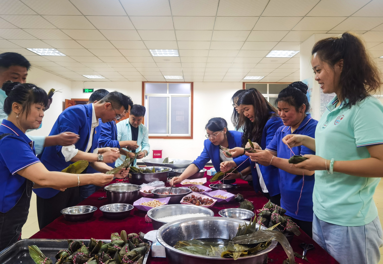 一折叶,一盛米,一缠线,包裹着我们对美好生活的向往和祝福,粽香四溢,欢声笑语,大家共同感受着端午节的温馨与欢乐,在互相帮助中拉近了彼此的距离,也进一步增强了全体员工的幸福感、归属感,增强了团队间的互动与默契,更有效激发出大家爱岗敬业的热情,以更昂扬的斗志和更强的责任心,不忘初心、砥砺前行,用实际行动为海天电缆的高质量发展再添动力!