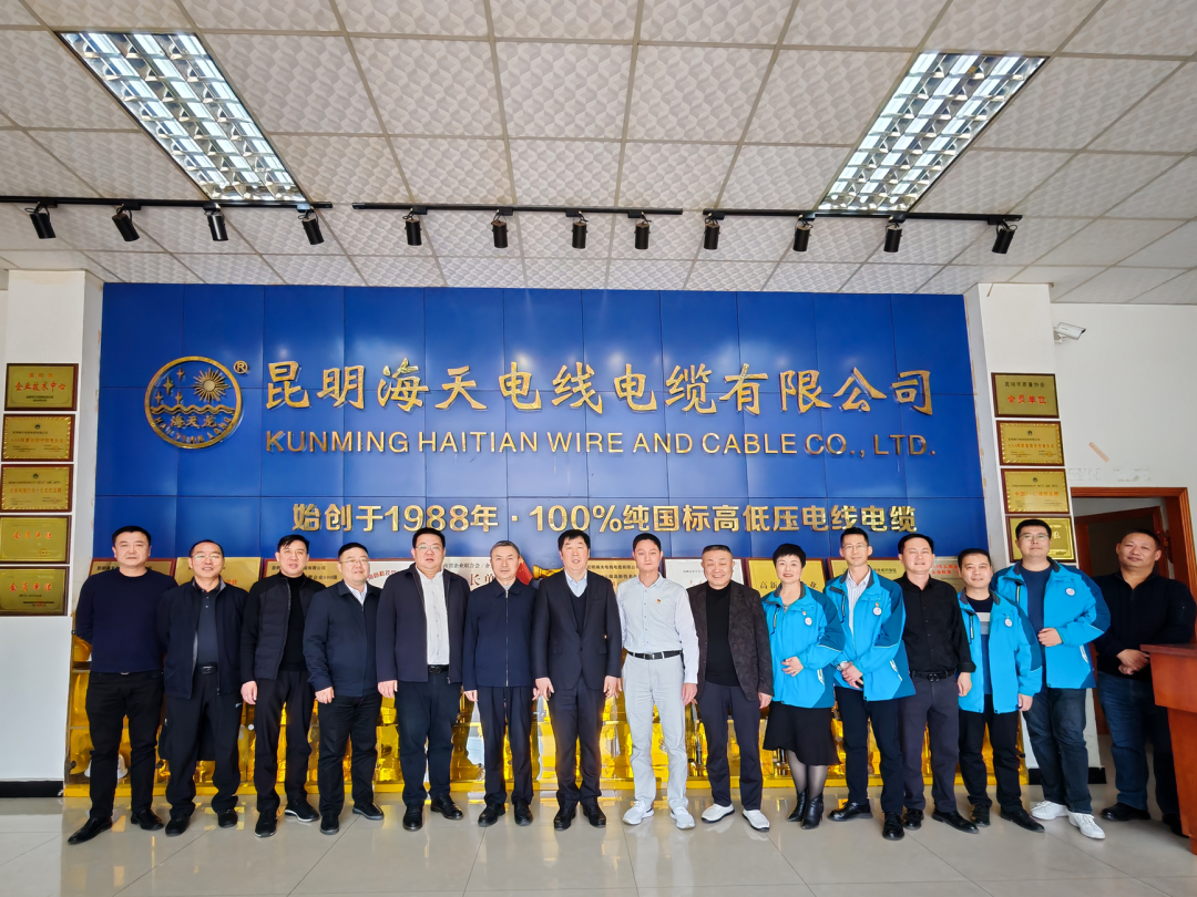 2025年3月4日下午,湖北省随州市人大常委会张道亮主任、云南省市场监督管理局韩立银处长、随州市各领导及商会会长等一行莅临海天电缆调研指导,海天电缆总经理林子胜、副总经理陈冬宝、魏芳利等公司领导全程陪同。